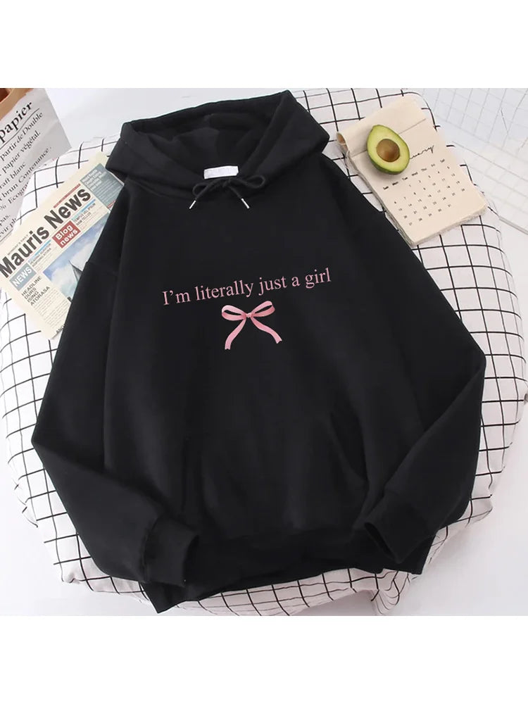 I'm Literally Just A Grill and Pink Bow Print Pattern for Autumn and Winter Women's Hooded Sweatshirt Fashion Casual Clothing